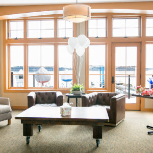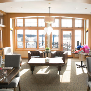 Setup: 6 tables of 6 The Casco Bay Room is best spot for a baby or bridal shower. We can seat 36 guests, while also offering soft seating for cocktailing and gift opening.